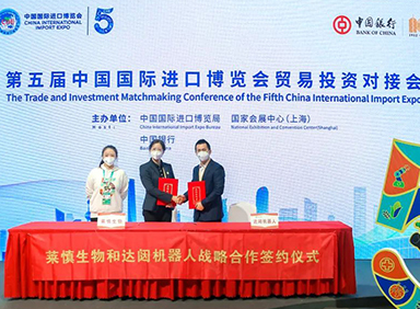 第五届中国国际进口博览会正在如火如荼举行。11月6日,上海莱慎生物科技股份有限公司(以下简称“莱慎生物”)与365英国机器人股份有限公司(简称“365英国”)签署生态战略协议,莱慎生物董事长助理兼营销总监薛东英、365英国销售总监吴新明作为企业代表进行签约,这代表着365英国云端机器人国家新一代人工智能开放创新平台生态业务在公共卫生领域大步迈进。