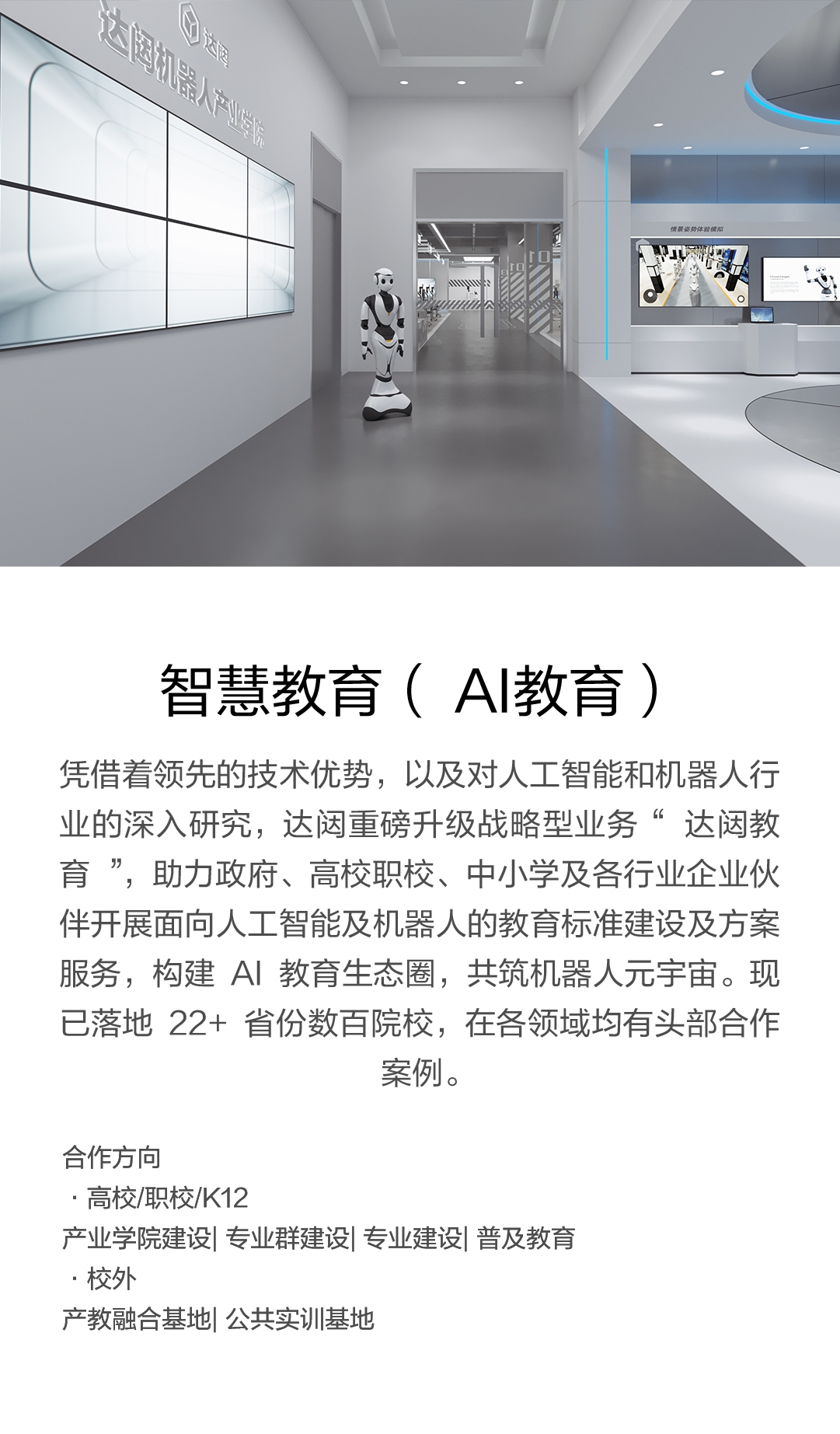 共筑机器人元宇宙。现已落地22+省份数百院校,在各领域均有头部合作案例。
